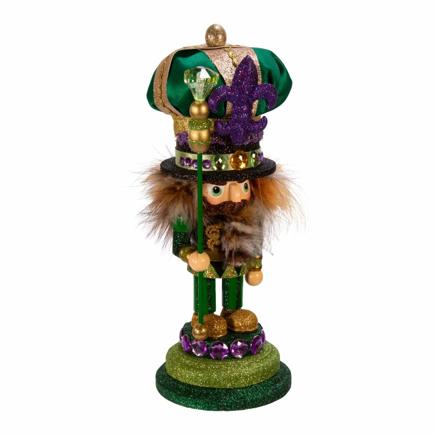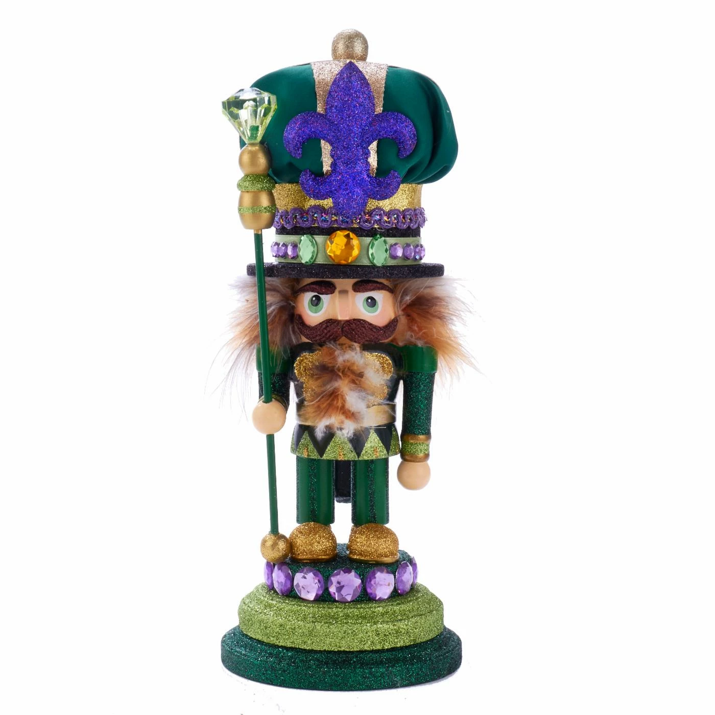 Designed by renowned artist Holly Adler, Hollywoodโข Nutcrackers is a whimsical collection of nutcrackers created exclusively for Kurt Adler. This 12-Inch Hollywoodโข Mardi Gras Nutcracker features green, purple, and gold glitter and gem detailing. His festive hat features the Fleur De Lis! This nutcracker is a stunning addition to any holiday dรฉcor.
