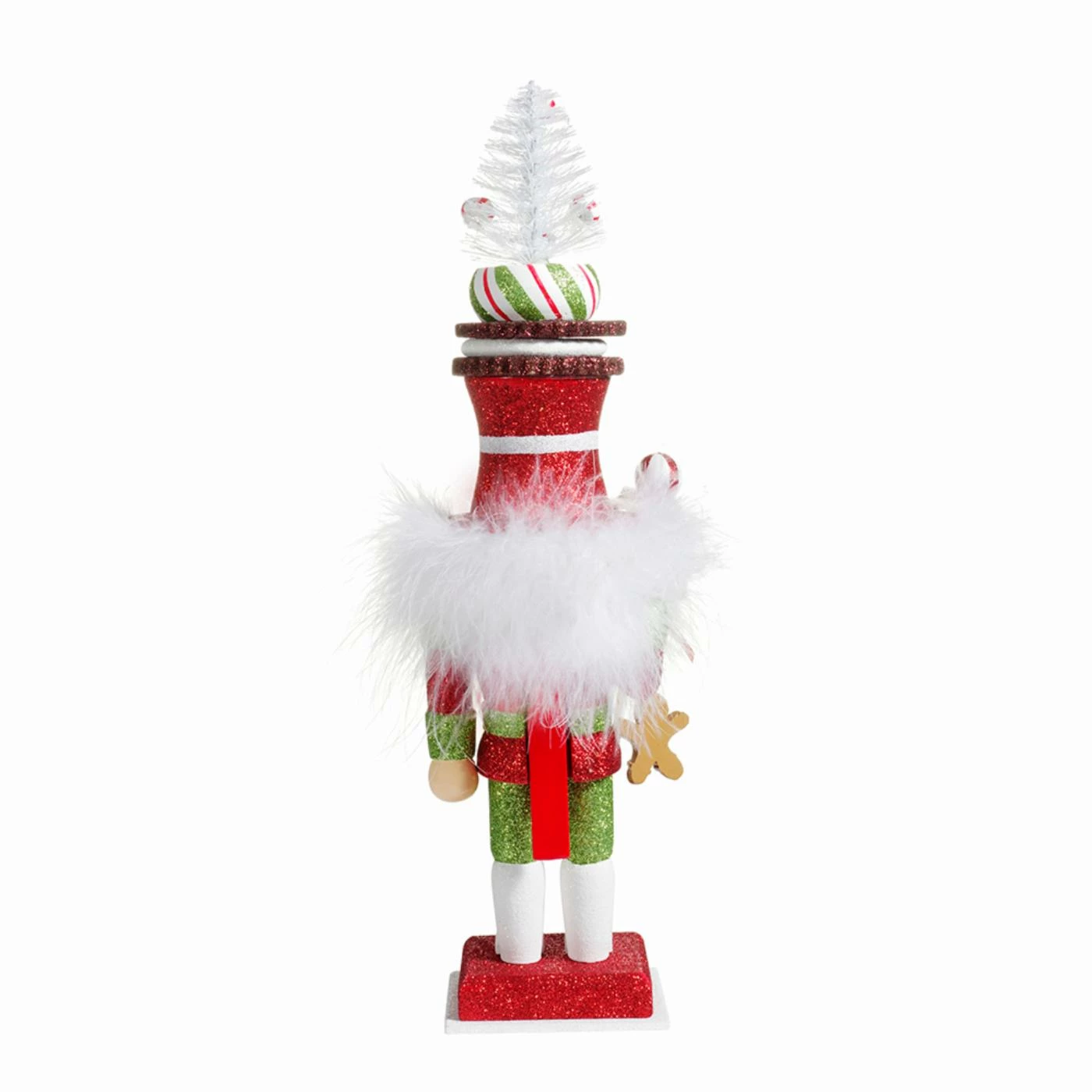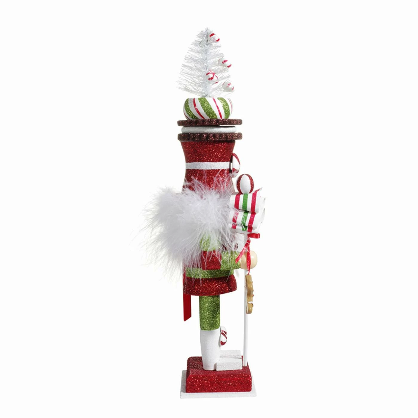 Designed by renowned artist Holly Adler, Hollywoodโข Nutcrackers is a whimsical collection of nutcrackers created exclusively for Kurt Adler. This unique 13.5-Inch Candy Soldier Nutcracker features red and green glitter detailing with peppermint candies. In his hand, are Christmas themed desserts. Topped off with a white tree decorated with peppermint candy ornaments, this nutcracker is a stunning addition to any sweet tooth’s holiday dรฉcor.