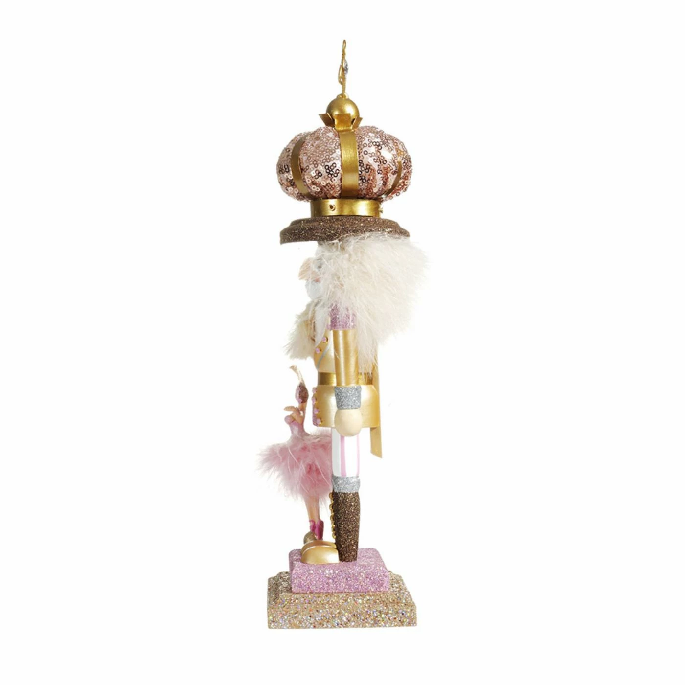 Designed by renowned artist Holly Adler, Hollywoodโข Nutcrackers is a whimsical collection of nutcrackers created exclusively for Kurt Adler. This unique 14-Inch Ballet and Crown Nutcracker features a king in glitter detail with sequin crown. By the foot of the king is a ballerina dressed in pink. This nutcracker is a stunning addition to any holiday dรฉcor.