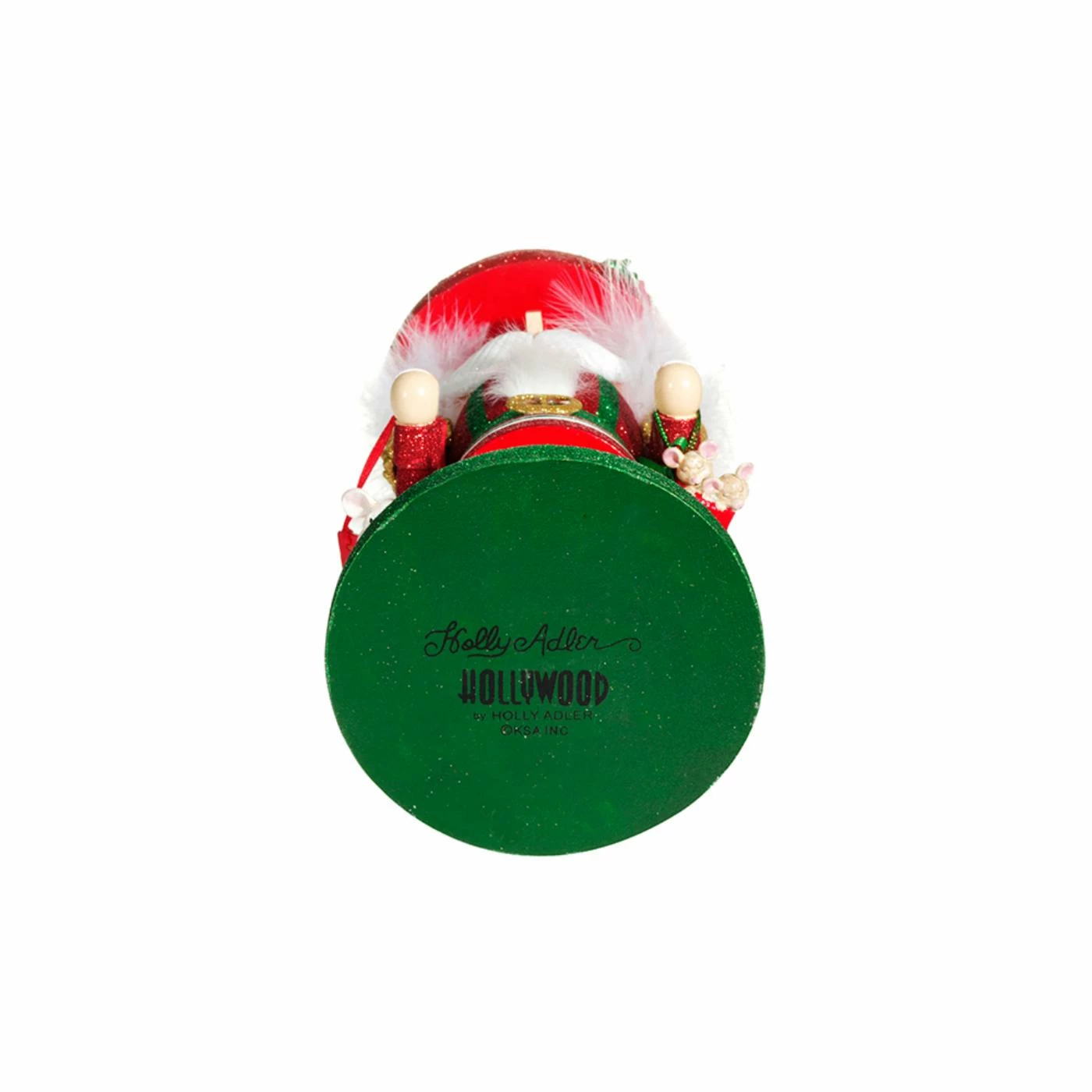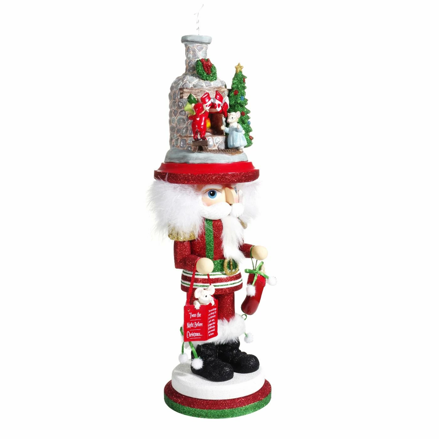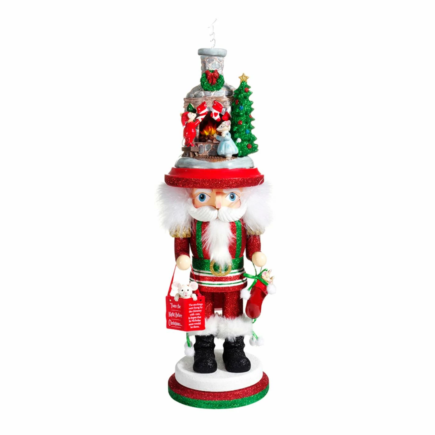 Designed by renowned artist Holly Adler, Hollywood™ Nutcrackers is a whimsical collection of nutcrackers created exclusively for Kurt Adler. This unique 17.5-Inch Stockings on Fireplace Nutcracker features glitter detailing all around. In one hand is a “T’was the Night Before Christmas” book ornament and in the other a stocking ornament. Topped off with a decorated scenic stockings hanging on fireplace hat. This nutcracker is a stunning addition to any holiday décor.
