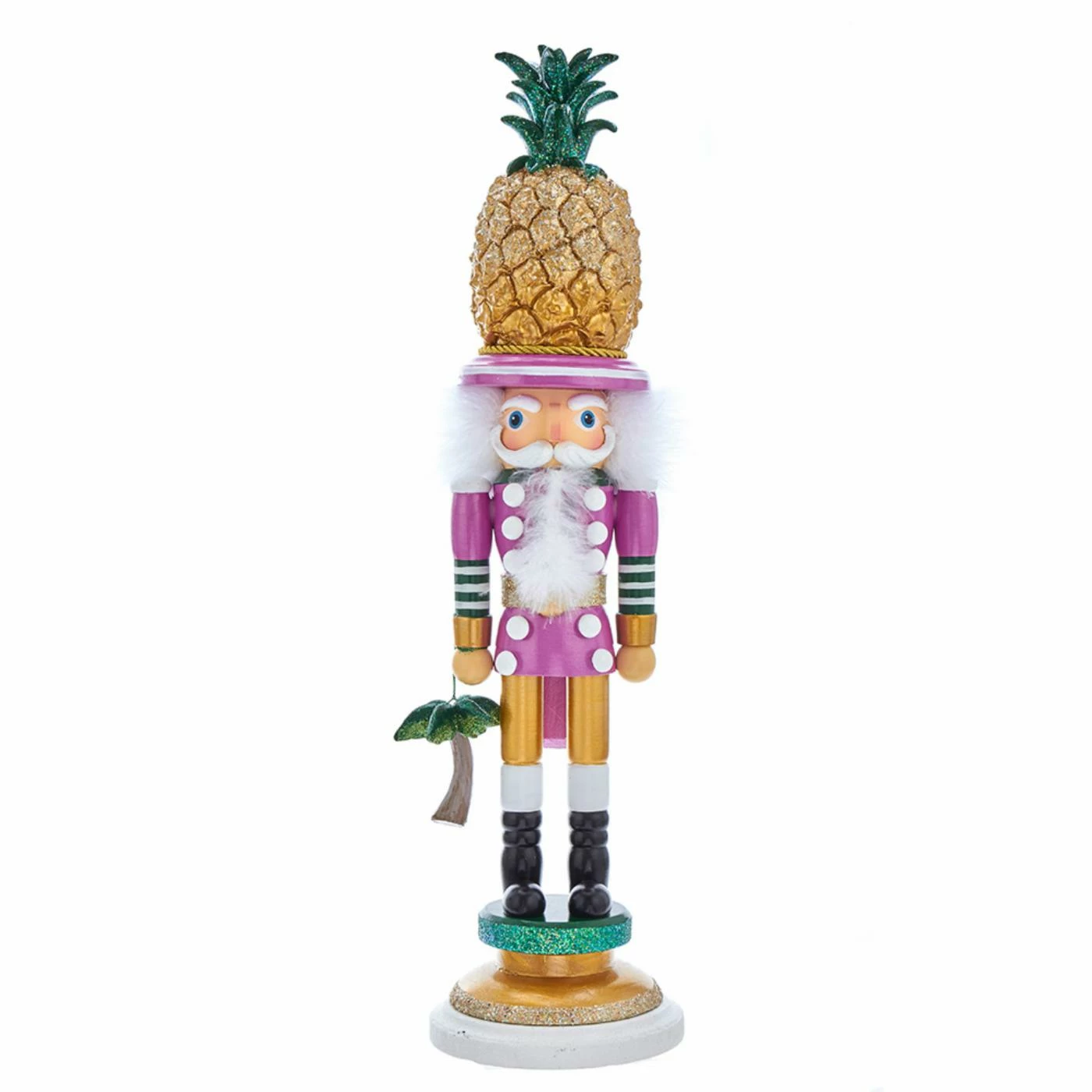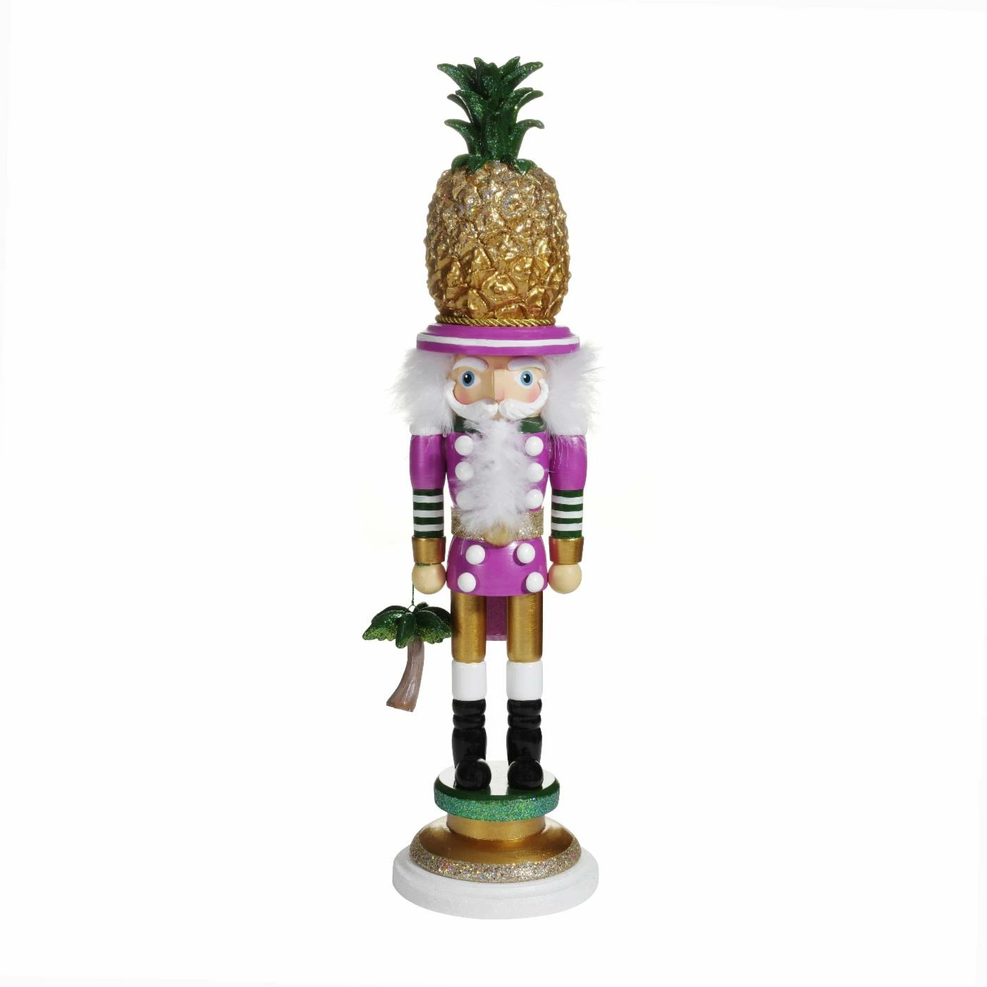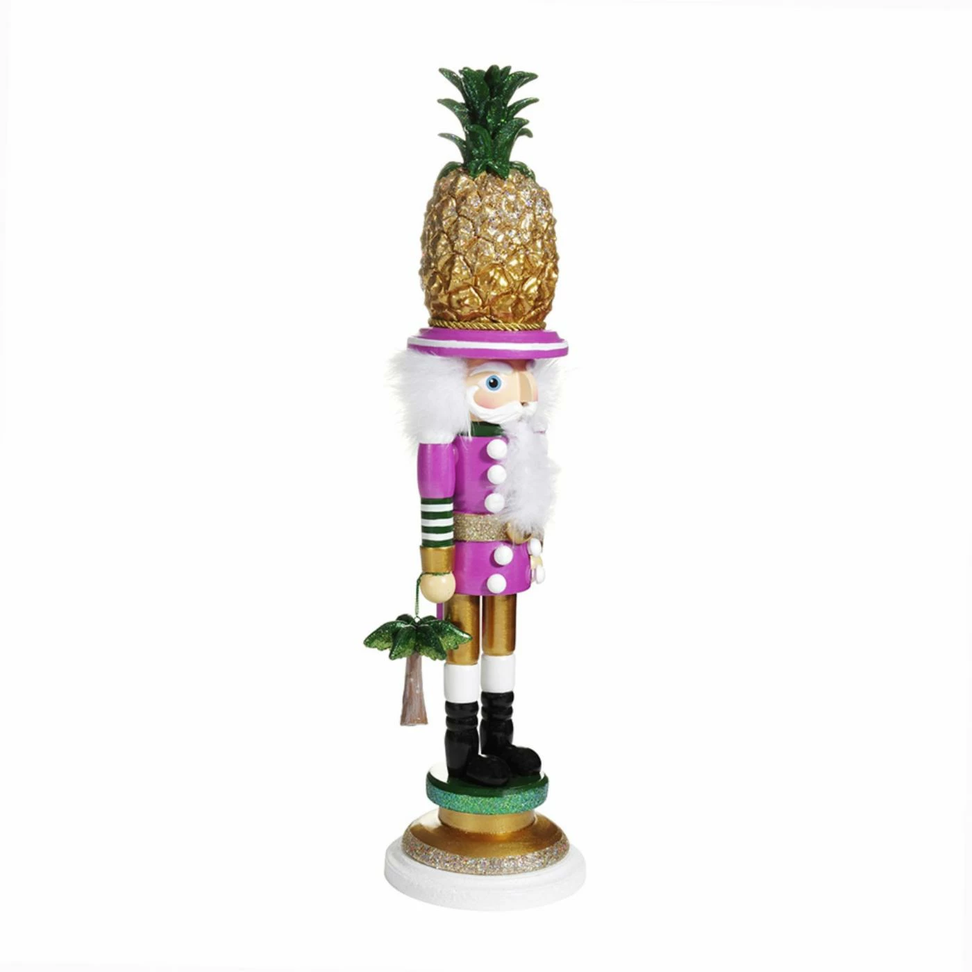 Hollywoodโข Nutcrackers is a whimsical collection of nutcrackers created exclusively for Kurt S. Adler, Inc. and features an assortment of designs that put a unique, vibrant, memorable twist on traditional nutcrackers. Add a tropical touch to your home with this 19.5-Inch Pineapple Hat Nutcracker. This nutcracker features a bring pink coat while holding a palm tree ornament. Topped off with a pineapple hat, this nutcracker is a stunning addition to any holiday dรฉcor.