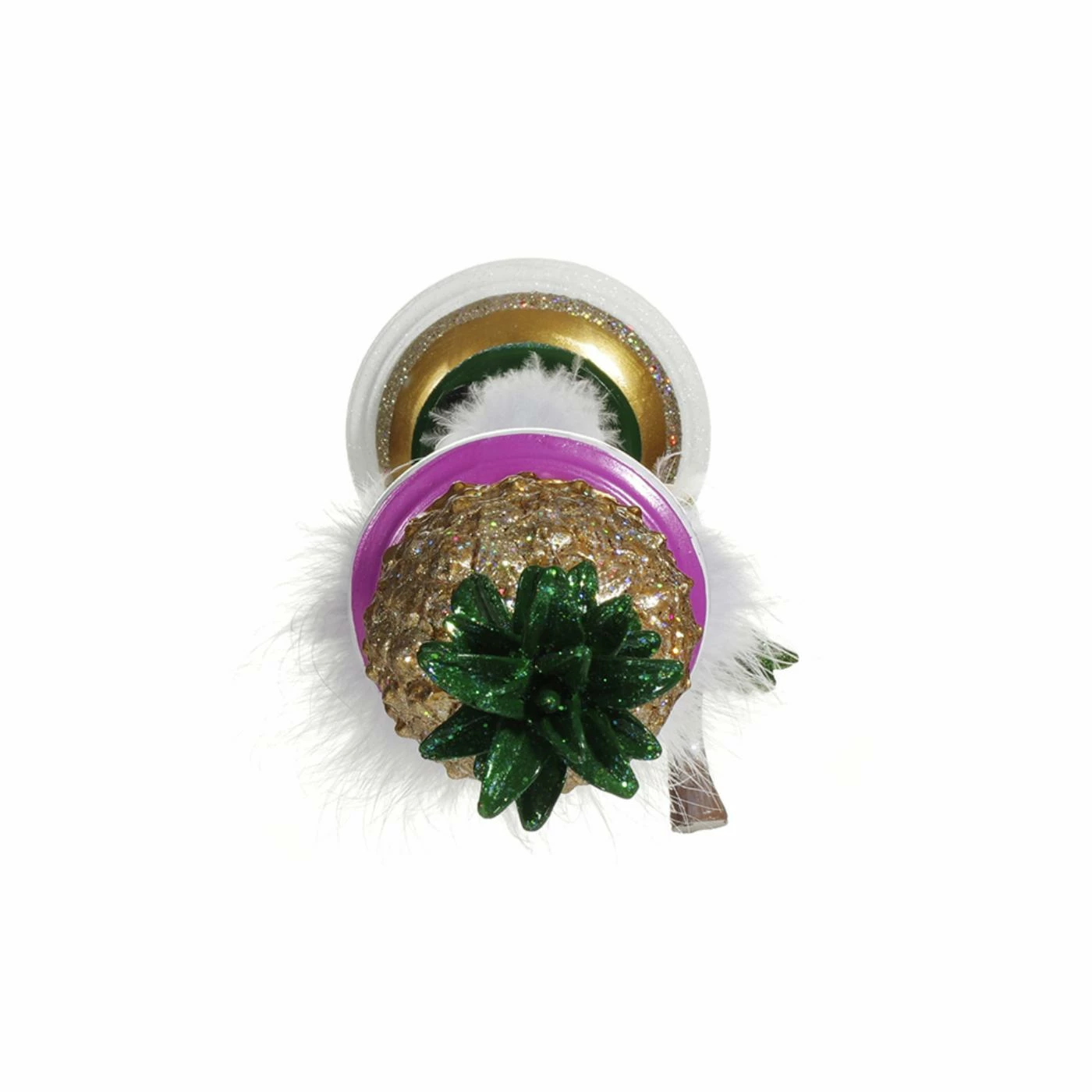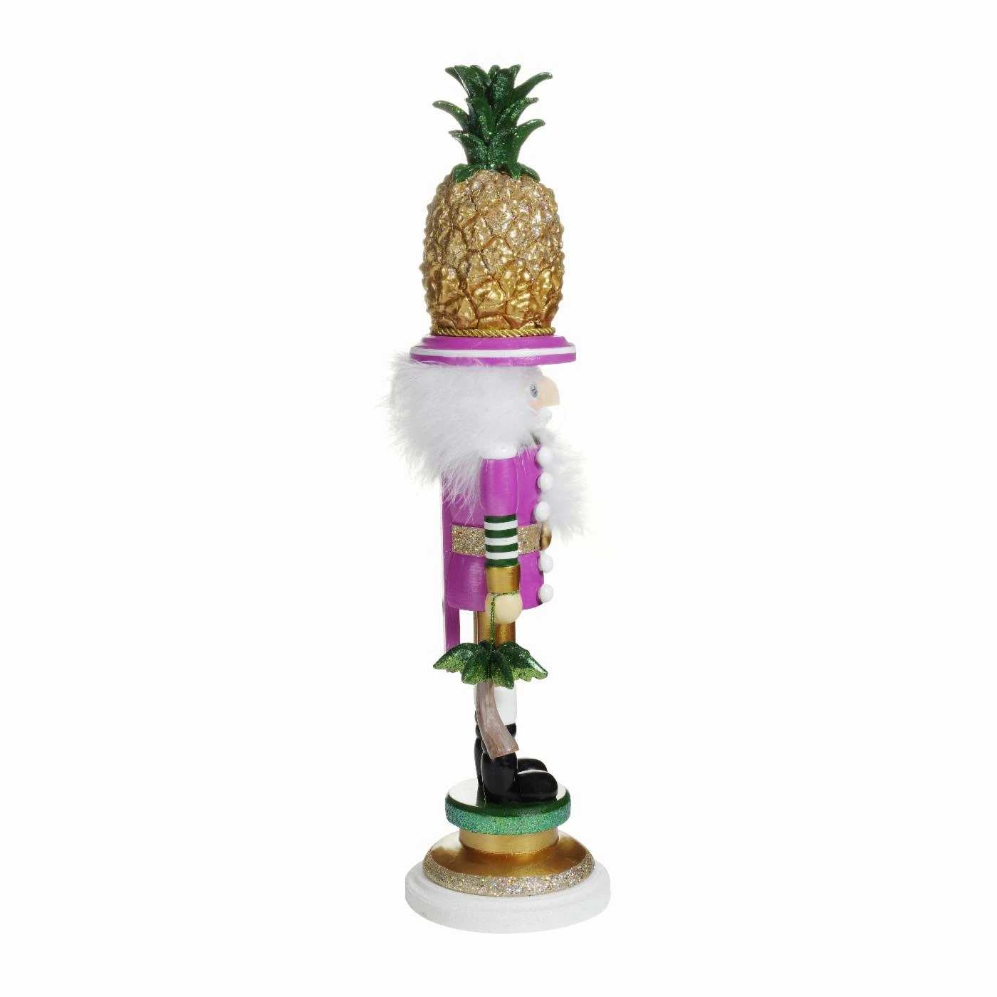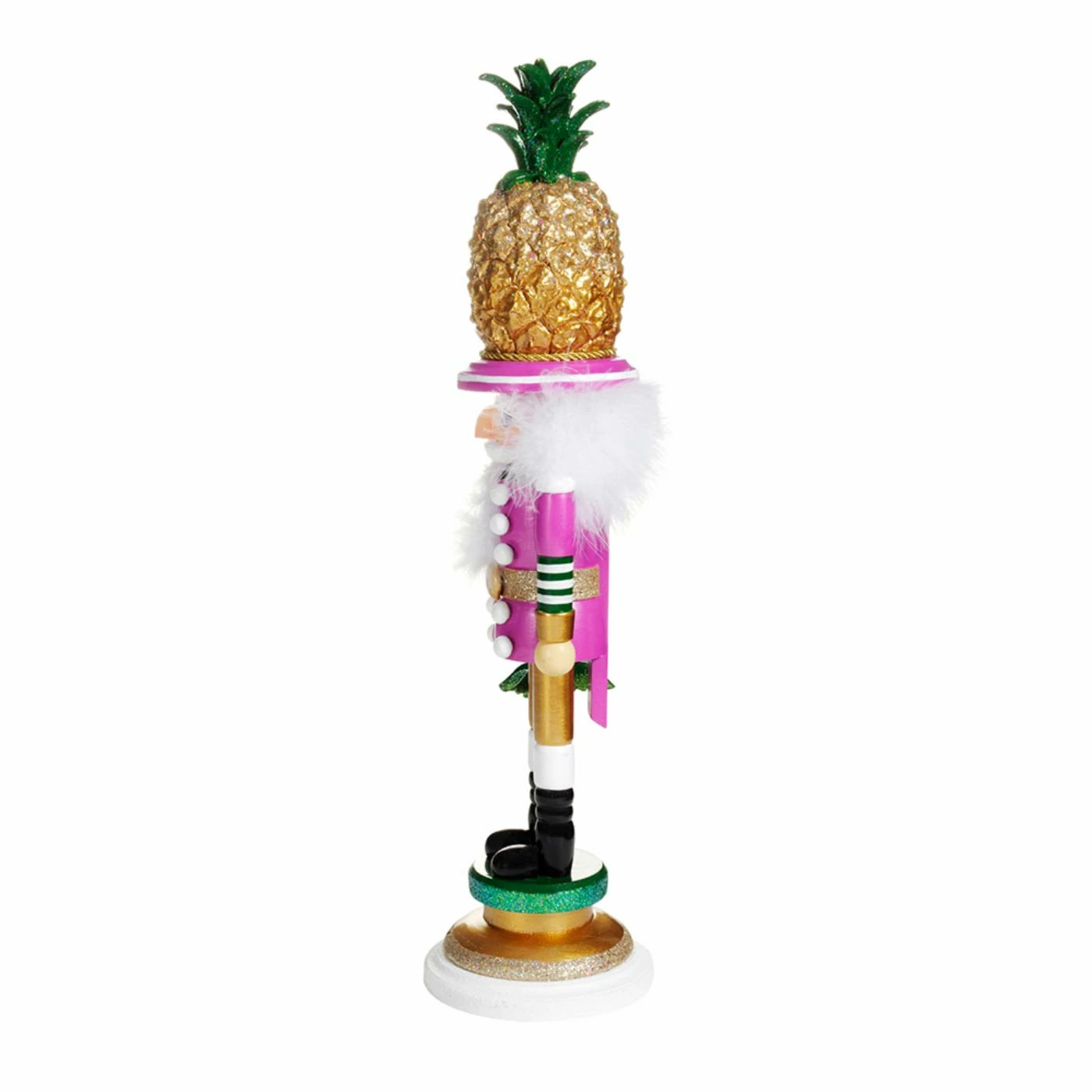 Hollywoodโข Nutcrackers is a whimsical collection of nutcrackers created exclusively for Kurt S. Adler, Inc. and features an assortment of designs that put a unique, vibrant, memorable twist on traditional nutcrackers. Add a tropical touch to your home with this 19.5-Inch Pineapple Hat Nutcracker. This nutcracker features a bring pink coat while holding a palm tree ornament. Topped off with a pineapple hat, this nutcracker is a stunning addition to any holiday dรฉcor.