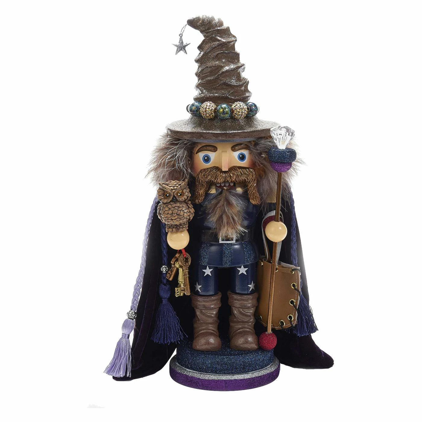 Bring a magical quality to your Christmas dΓ©cor with the Kurt Adler 15 in. Hollywood Wizard Nutcracker with Owl. This wizardly nutcracker brings a purple and brown color scheme to your holiday dΓ©cor. A cute owl detail and pointed hat complete the Holly Adler design.