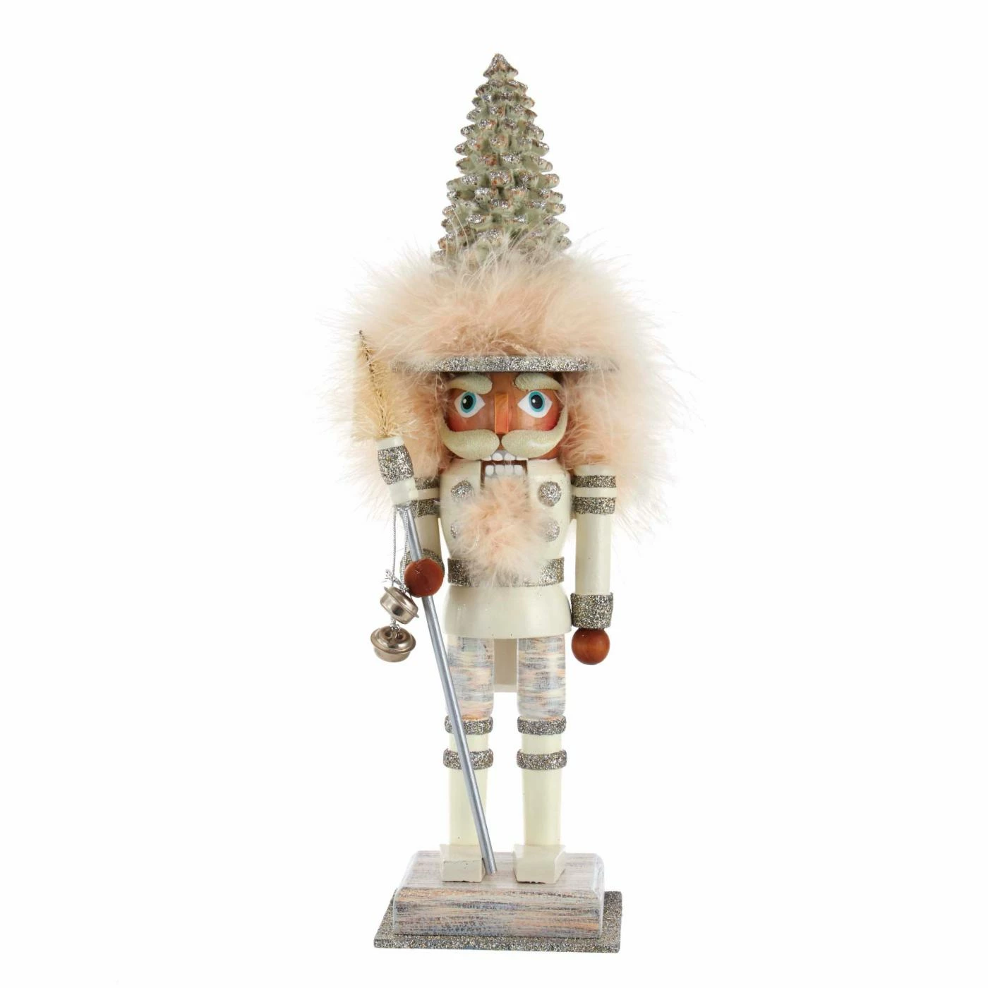 Hollywood™ Nutcrackers is a whimsical collection of nutcrackers created exclusively for Kurt S. Adler, Inc. and features an assortment of designs that put a unique, vibrant, memorable twist on traditional nutcrackers. This 11.8-Inch Weathered White Nutcracker with Pinecone Hat features a white coat with silver detailing. In his right hand he is holding a staff. A frosted pinecone sits at the head of the nutcracker to add a woodsy touch to your holiday décor!