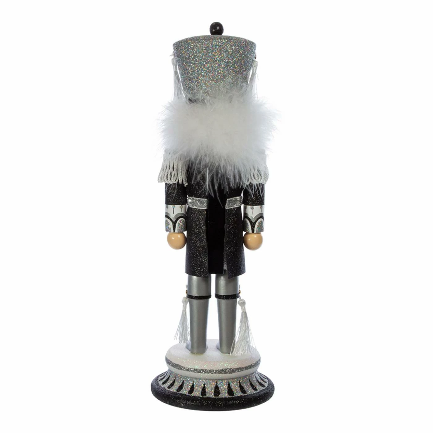 Hollywood Nutcrackers is a whimsical collection of nutcrackers created exclusively for Kurt S. Adler, Inc. and features an assortment of designs that put a unique, vibrant, memorable twist on traditional nutcrackers. This 15-inch silver and black Nutracker soldier features a soldier dressed in a silver and black glittered outfit with clear gemstone accents. This expertly crafted glittered nutcracker is standing on a matching silver and black glittered base.