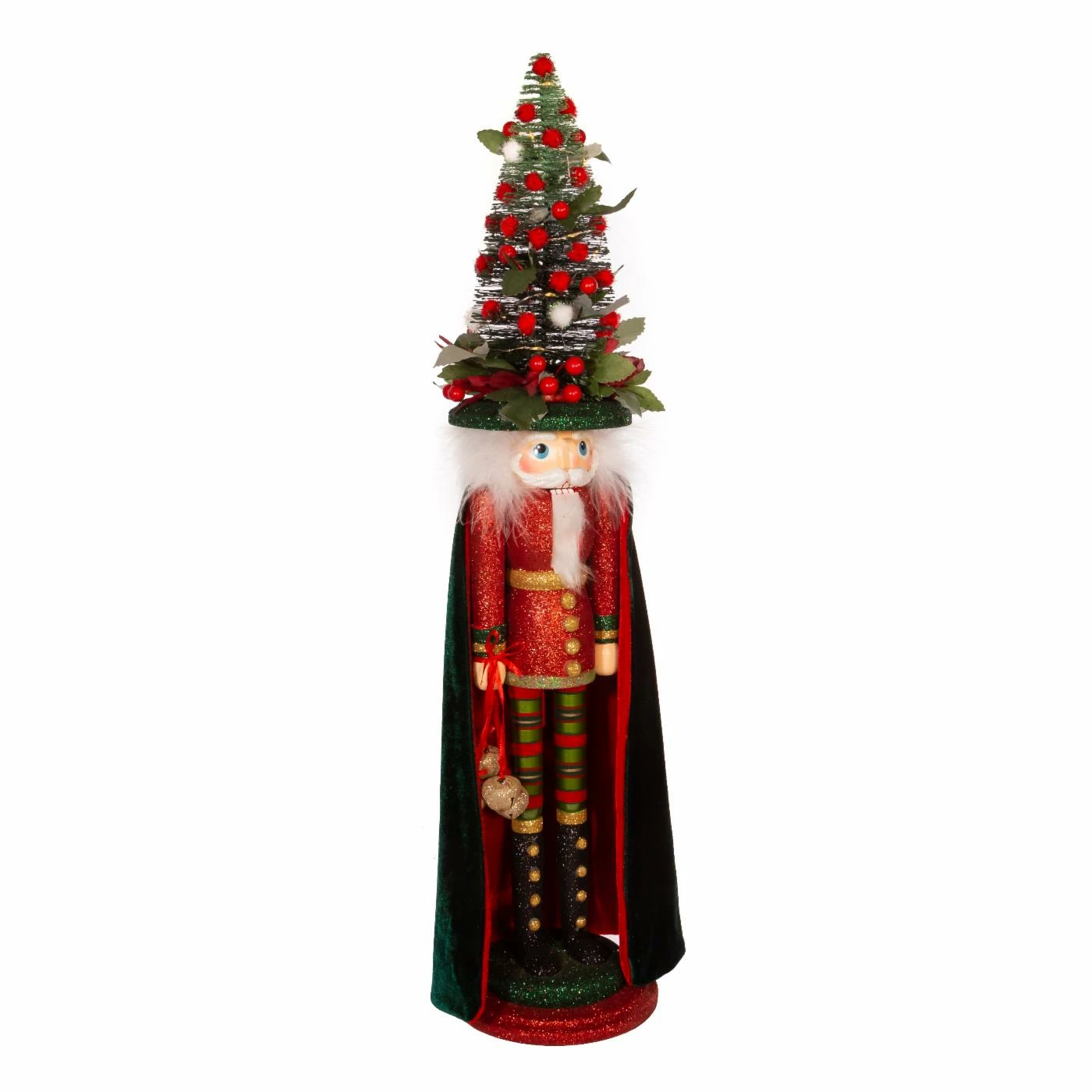 Designed by renowned artist Holly Adler, Hollywoodโข Nutcrackers is a whimsical collection of nutcrackers created exclusively for Kurt S. Adler, Inc., and features a variety of designs including Christmas, fantasy, and everyday nutcrackers. This 24-Inch Battery-Operated Hollywoodโข Red and Dark Green Nutcracker with LED Hat features a red and dark green glittered outfit, with a matching hat that when switched on, glows from within.