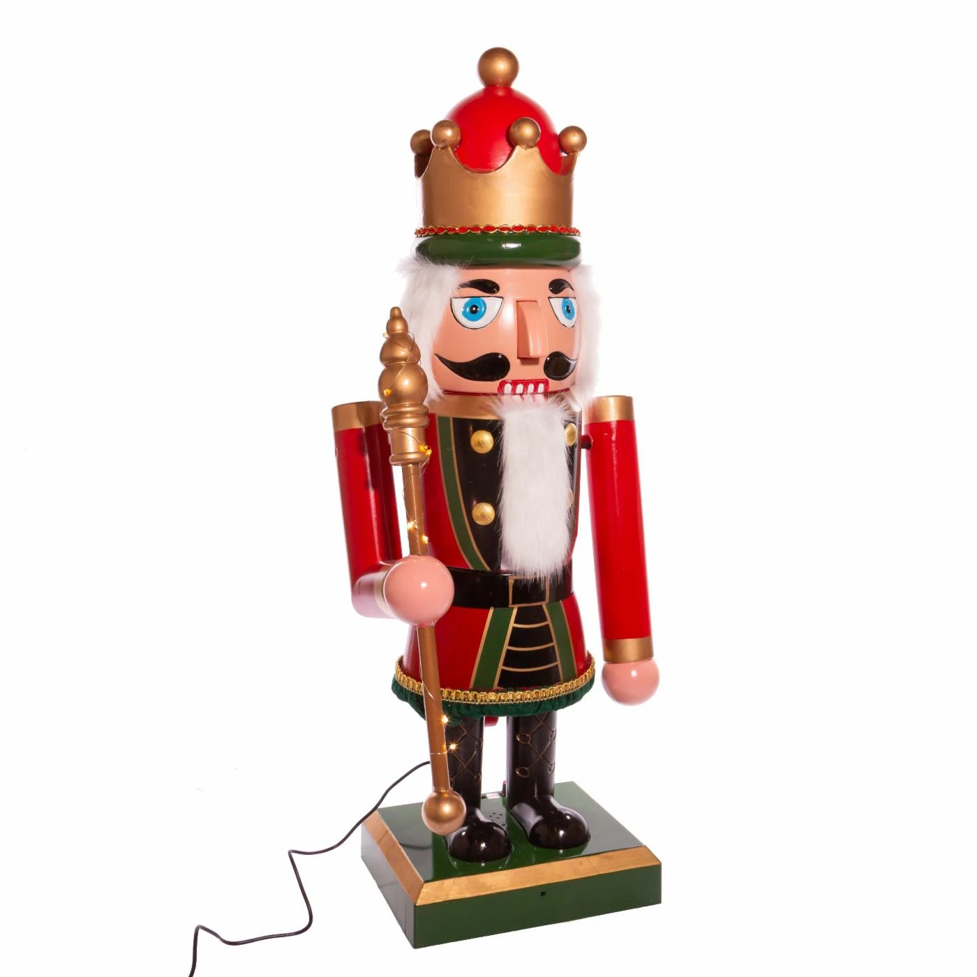 This 43-Inch Lighted Musical Collapsible Nutcracker is a beautiful addition to your holiday décor! The nutcracker is collapsible which makes it extra convenient. It has 10 fairy warm white LED lights and is controlled by light sensor and sound sensor. This nutcracker plays the tunes Jingle Bells, Deck the Halls and Toyland. He has a staff in one hand and wears a crown.