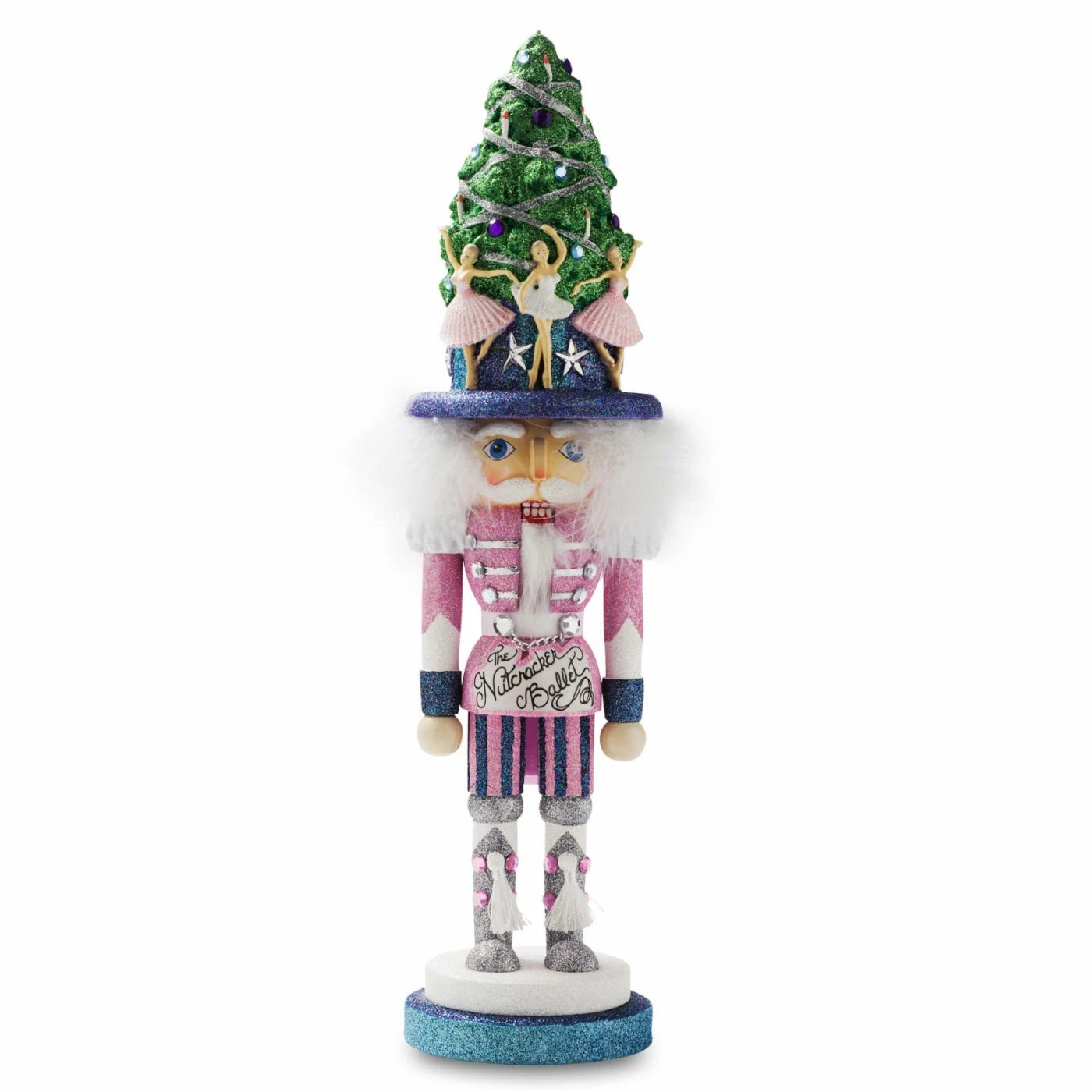 Bring the classic “Nutcracker Suite” into your home with the Kurt Adler 18 in. Hollywood Ballet Nutcracker standing proud. This extravagant nutcracker is finely detailed with pirouetting ballet dancers atop his head. This strong wooden nutcracker is designed by Holly Adler.