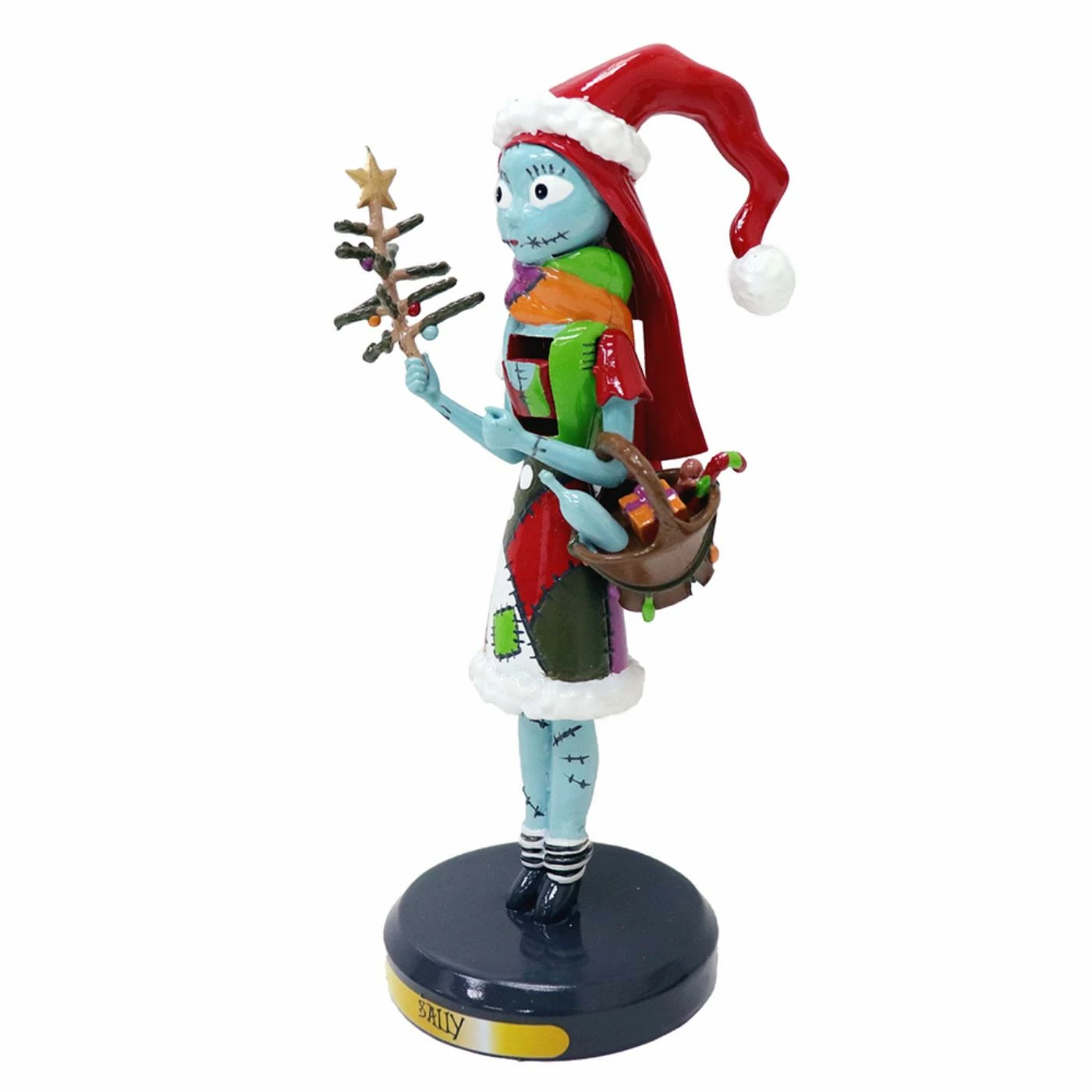 Help Sally discover Christmas with this Disneyยฎ The Nightmare Before Christmas Sally Nutcracker from Kurt Adler. This nutcracker features Sally, the humanoid ragdoll, made from various pieces stitched together holding a Christmas tree and basket. The base of the this nutcracker is a gold plaque with “Sally” written in black letters.