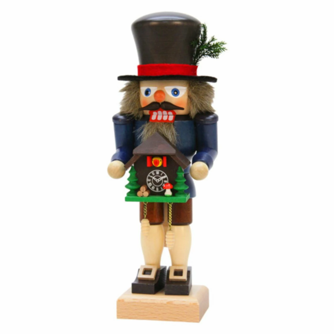 The Christian Ulbricht Clock Maker Nutcracker carries a meticulously crafted cuckoo clock. This heirloom-quality nutcracker is an original Ulbricht design, which makes it a valuable addition to your collection. It was handcrafted and hand-painted by craftsmen in Germany.
