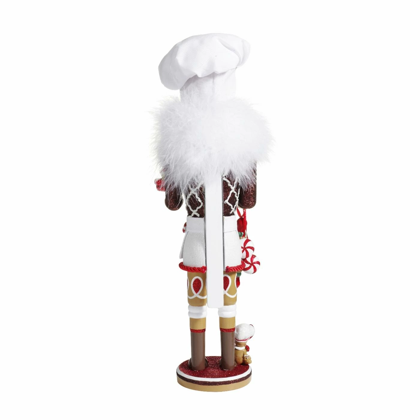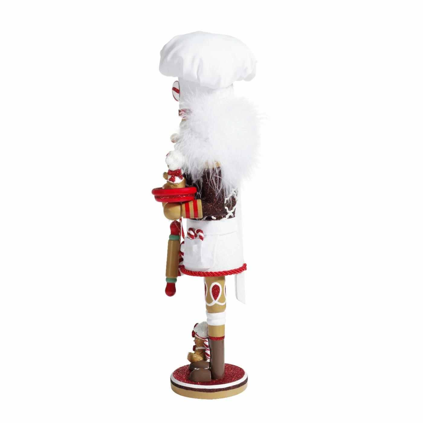 Designed by renowned artist Holly Adler, Hollywood Nutcrackers is a whimsical collection of nutcrackers created exclusively for Kurt Adler. This unique Kurt S. Adler 15.5 in. Hollywood Gingerbread Chef Nutcracker features brown gingerbread-inspired detailing. In one hand is a rolling pin and peppermint candy ornament, in the other hand is a baking pan with gingerbread cookies hugging. Topped off with a chef’s hat and peppermint candy in the center, this nutcracker is a stunning addition to any sweet tooth’s holiday dΓ©cor.