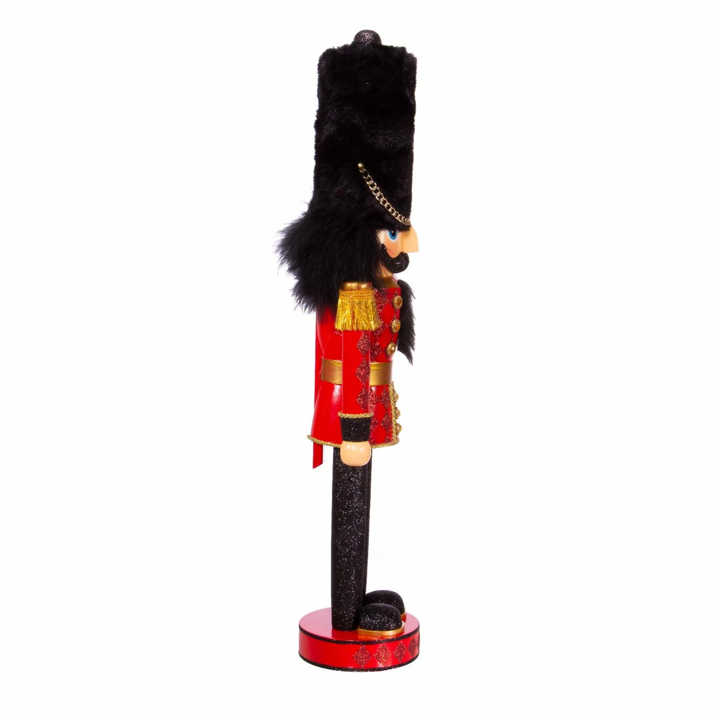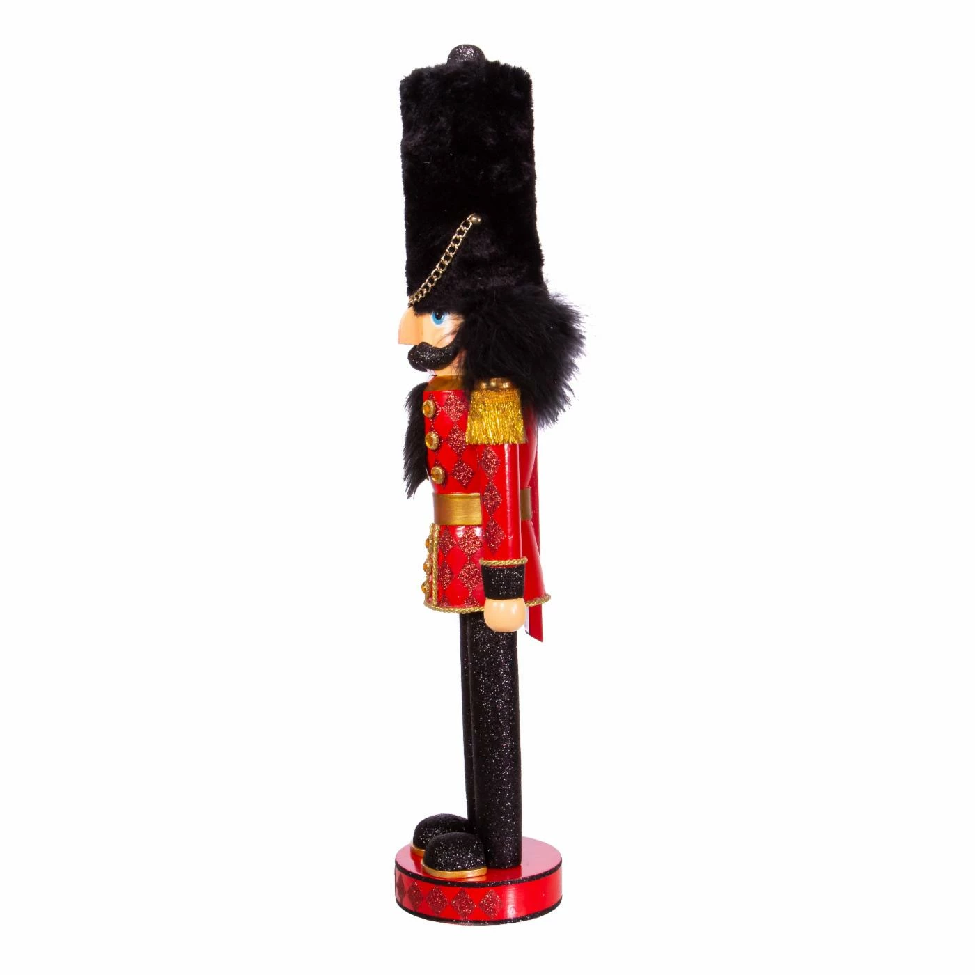 This Kurt S. Adler 23.5 in. Hollywood Royal Soldier Nutcracker features a Royal Soldier standing upright featuring a tall black hat, red diamond glitter suit, and gold buttons and tassels. He is a beautiful figurine standing guard to watch over your home. Hollywood Nutcrackers is a whimsical collection of nutcrackers created exclusively for Kurt S. Adler, Inc. and features an assortment of designs that put a unique, vibrant, memorable twist on traditional nutcrackers.