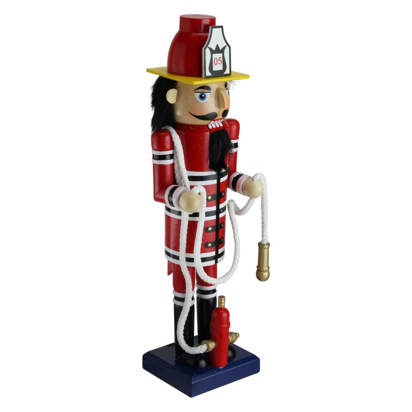 Rescue your holiday d茅cor from the ordinary with the Northlight 14 in. Nutcracker Fireman with Hose. The wood, fabric, and acrylic nutcracker depicts a fireman in his red, white, and black uniform and holds a rope hose.