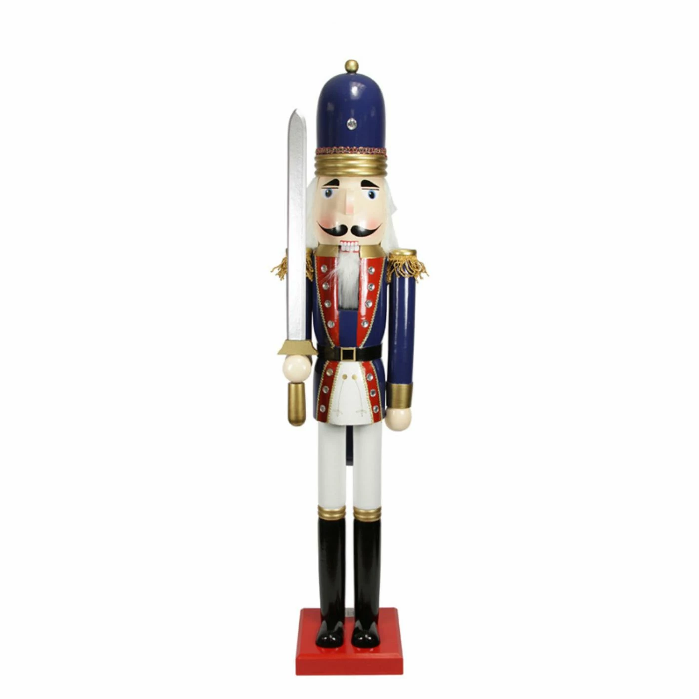 Measuring four feet in height, the Northlight 48 in. Nutcracker Soldier with Sword will catch the eye of your holiday guests. The wooden nutcracker is decorated with fabric fringe, faux fur, and acrylic rhinestones.